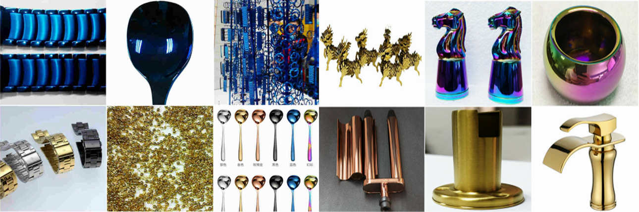 鈦金(jin)系列(lie)(lie)、鋯金(jin)系列(lie)(lie)、拉絲系列(lie)(lie)、玄(xuan)(xuan)色(se)系列(lie)(lie)、玄(xuan)(xuan)色(se)膜層系列(lie)(lie),可完成深玄(xuan)(xuan)色(se)、爐(lu)內(nei)金(jin)、玫瑰(gui)金(jin)、仿金(jin)、鋯金(jin)、寶石藍、亮(liang)銀色(se)等(deng)共(gong)十(shi)多種(zhong)色(se)彩。